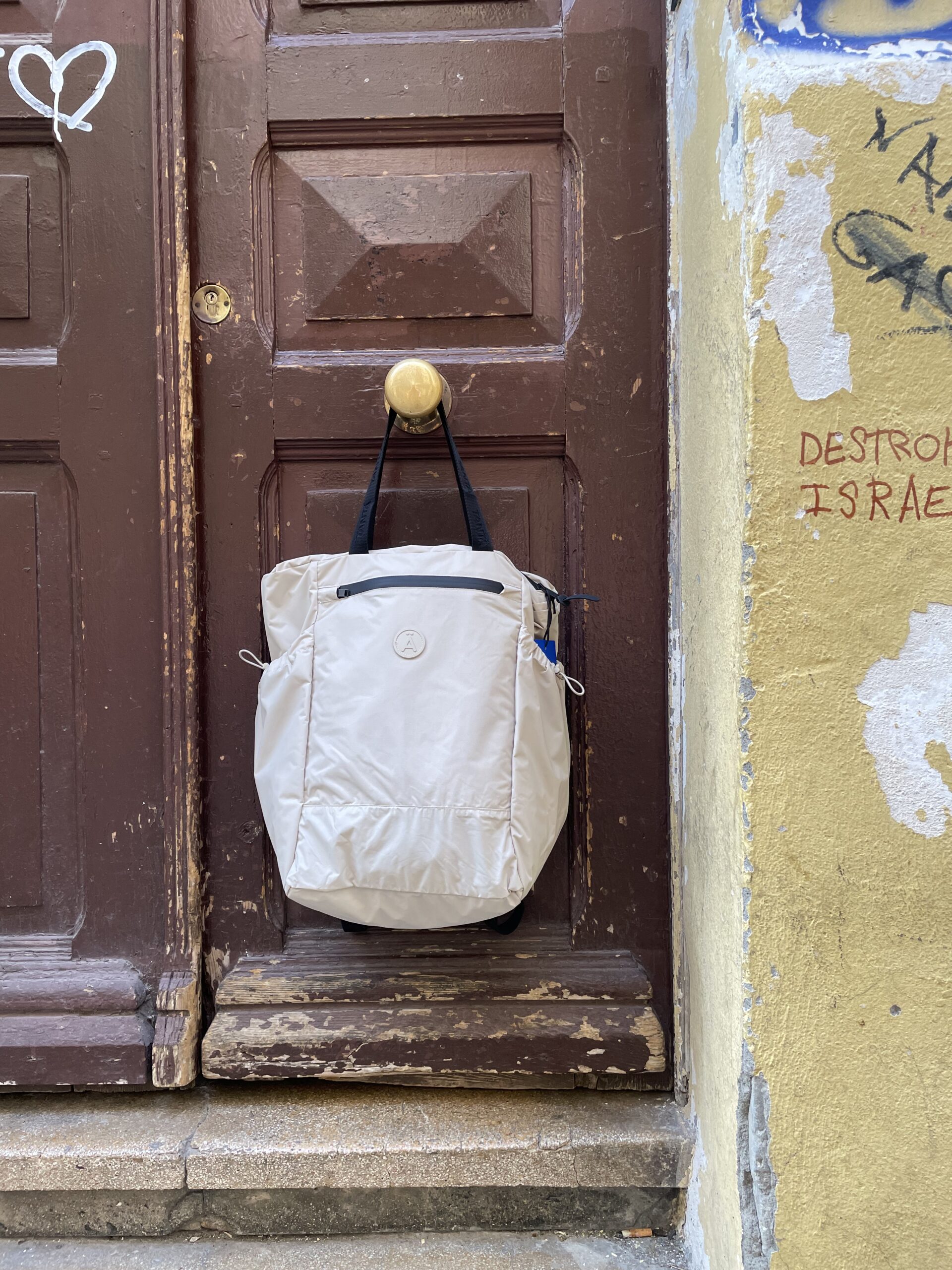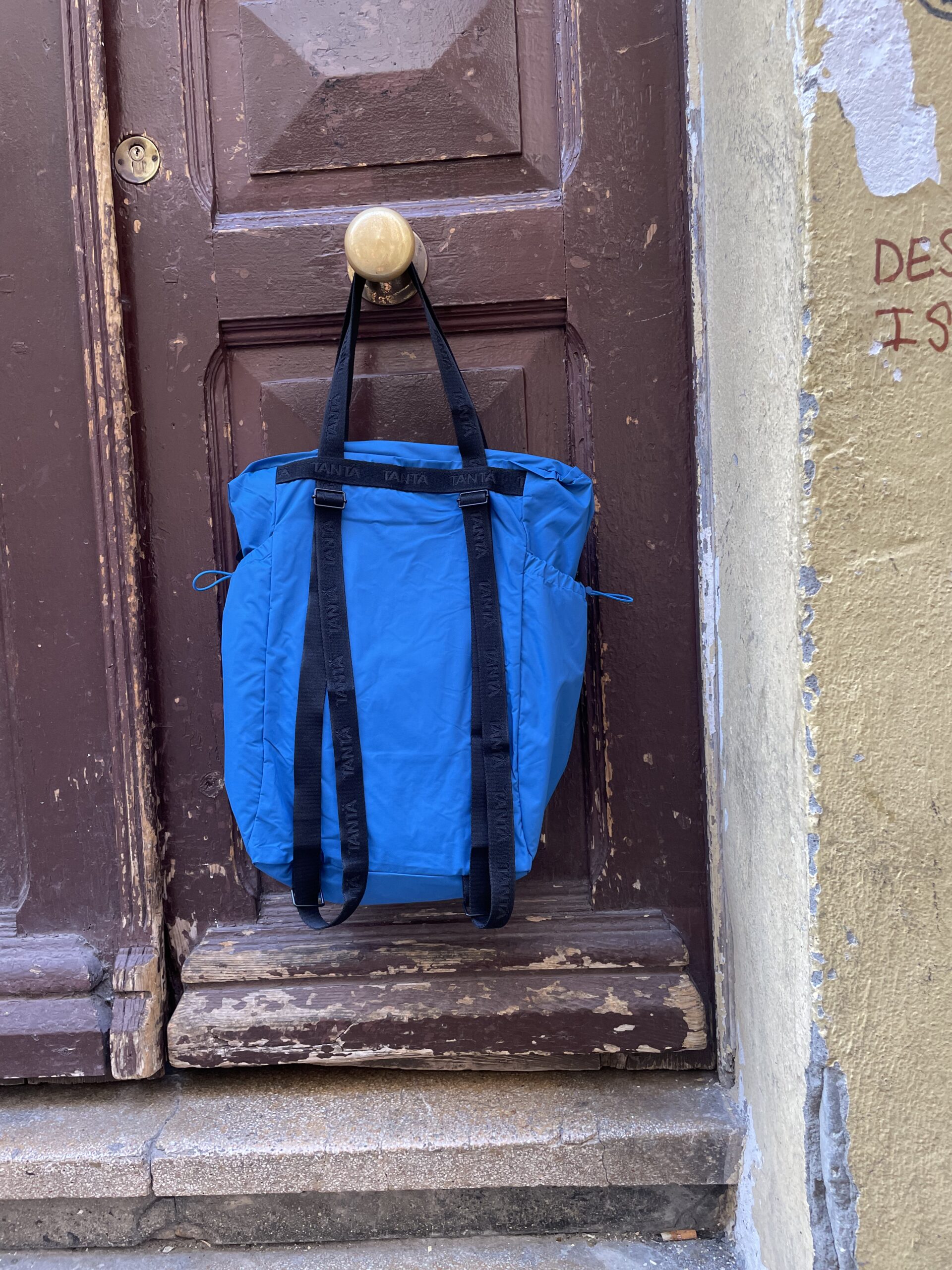 Mochila de Tanta Aqualis, una mochila ultra-ligera que puedes llevar en cualquier sitio y que te sacará de algún apuro, con cremalleras termo-selladas y tejido impermeable, con bolsillos laterales para llevar tu botella y asas cortas para llevar al hombro como bolso, en varios colores a cual más bonita.